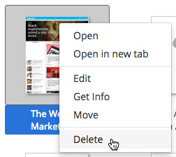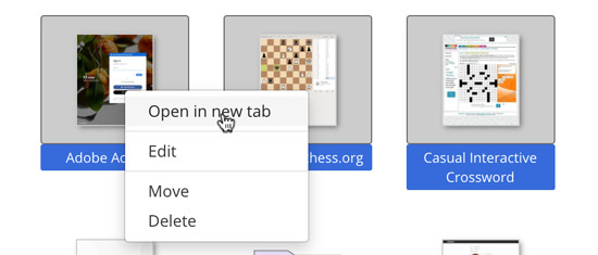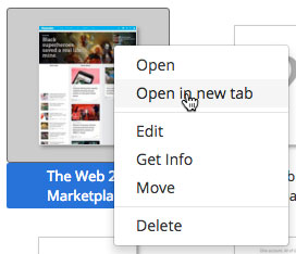 - Right-click the item to access it's context menu and click 'Open' or 'Open in new tab' (for bookmarks):