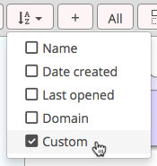 Custom sorting allows you to customize the order of items by dragging them into the order you want. For example, you could keep your 'Read later' folder as the first folder on your desktop. To enable custom sorting, select 'Custom' from the sort dropdown and then click on the 'Move item' icon ( the one with two squares that appears to the right of the 'All' button). When custom sorting is enabled, you will be able to drag items into the positions you like. When you are done sorting, click the 'Move item' icon again to disable custom sorting.