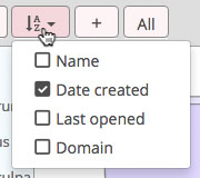Just about any view that you are in can be sorted: folders, the desktop, search results and view all mode. You can sort by 'Name', 'Date created', 'Last opened', and 'Domain':
