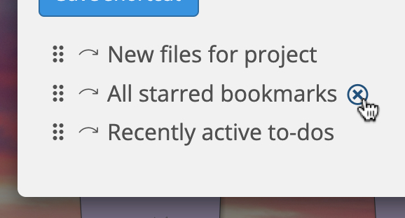 Click on, "Shortcuts" with the plus icon on the left to access the sorting popup. Then click the 'X' iconto the right of each shortcut to delete.
