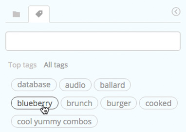 Tags can be accessed by clicking the tag icon in the top left corner of the nav on the left. Tags act as filters and an active tag will filter any view that you are in. For example, you could enable a 'to read' tag, perform a search and it would only search items tagged with 'to read.' To view all items with a tag, you would click 'view all' and then activate the tag. Multiple tag filters can be activated at once and tags can be searched with auto-complete.